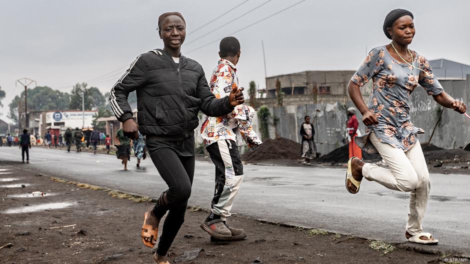 Habitantes do bairro de Keshero, em Goma, fogem do grupo rebelde M23 (27.01.2025)